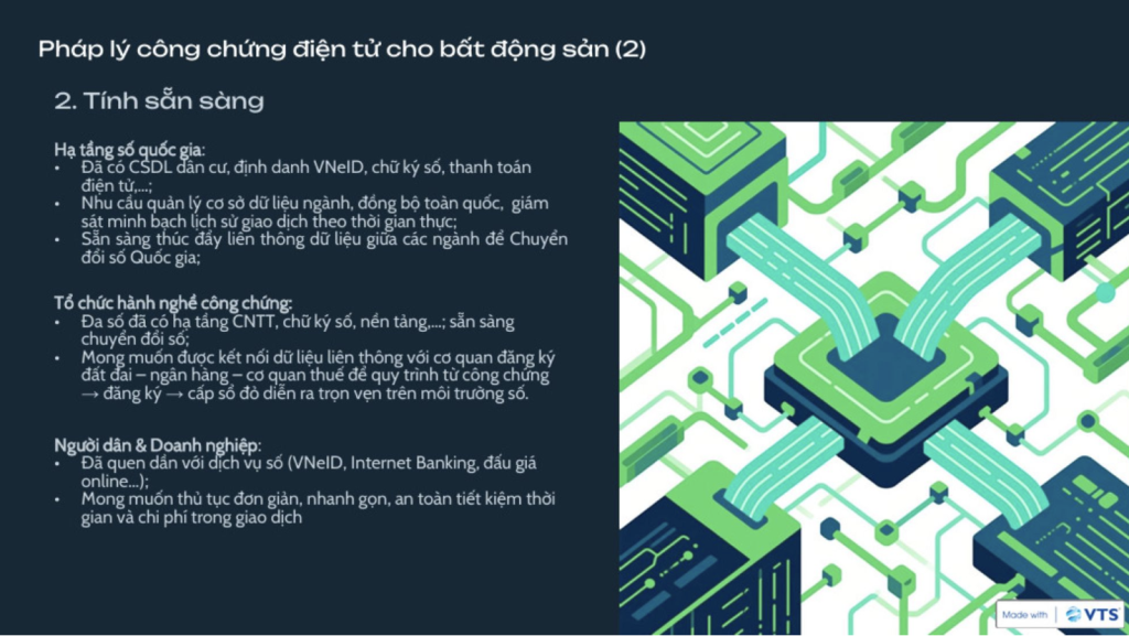 Như vậy, có thể thấy rằng, pháp luật đã có bước tiến quan trọng, nhưng để Công chứng điện tử bất động sản thực sự đi vào đời sống, cần có giải pháp công nghệ đồng bộ, tuân thủ chặt chẽ pháp luật, và dễ dàng áp dụng trong thực tiễn.